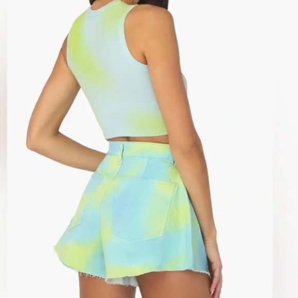 WeWoreWhat Flare Bell Short in Tie Dye Stretch Twill Denim - Size 25