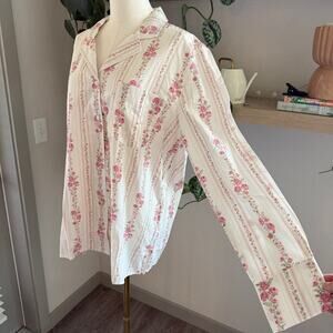 WeWoreWhat Floral Stripe Long Sleeve Pajama Top Ivory Pink Rose Size M