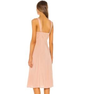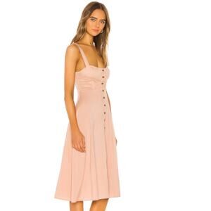 Keywords: peach button front dress, WeWoreWhat dress, summer midi dress, bustier top dress, adjustable strap dress