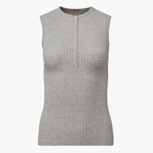 WeWoreWhat Heather Cable Knit Snap Front Rib Fitted Henley Muscle Tank Top Shirt