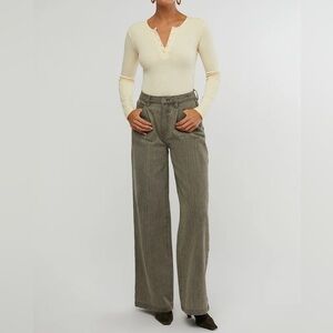 NWT WeWoreWhat High Rise Pleated Wide Leg Jean in Color Stone Wash Size 24, 5 pocket zip fly pant, pleated detail, wide leg, relaxed fit, 12” rise, 33” inseam, 26” leg opening, 100% cotton, brand new in poly bag, smoke free home