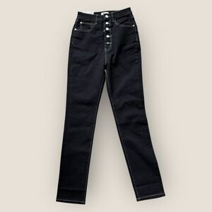Sleek and versatile, these WeWoreWhat high rise skinny jeans are a wardrobe must-have. Designed in a classic black wash with contrast stitching and a button-fly closure, these jeans offer a flattering fit that pairs effortlessly with everything from casual tees to dressy tops.