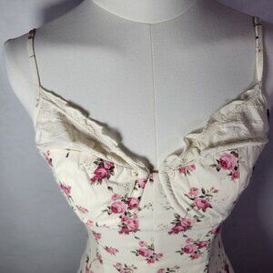 WeWoreWhat Ivory Lace Trim Peplum Rose Print Corset Mini Dress Size 2