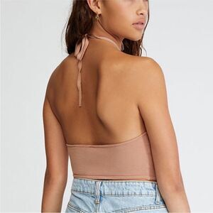 Show off your flirty side in the new Knit Halter Top from WeWoreWhat. This super cute crop top features a high neckline, an adjustable halter strap, and an open-back design.