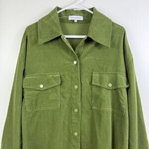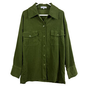WeWoreWhat NWOT Revolve Oversized Corduroy Shacket Basil Green XS/S Snap Button