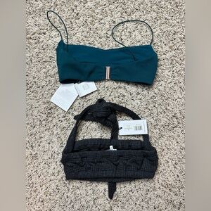 Stylish bralette set featuring a teal top and a gray ribbed design. Perfect for layering or wearing alone.
