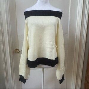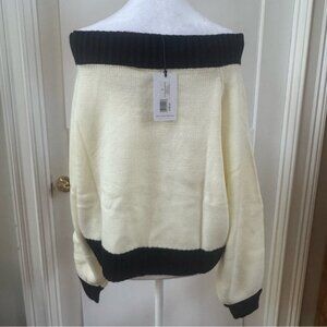 WeWoreWhat Off-Shoulder Black and Cream Sweater nwt ivory white