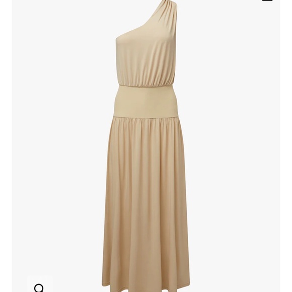 Brand Description: This flowy one-shoulder maxi dress features ruching along the bodice and skirt, as well as a power mesh waist panel. The fabric is a double-knit infused with four-way stretch.
