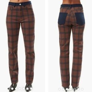 WeWoreWhat Plaid Color Block Icon Jeans, Size 24 - Brown/Navy - NWT