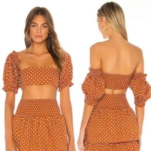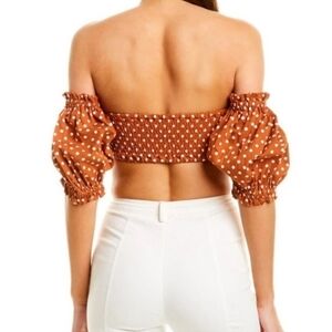 WeWoreWhat Polka Dot Coco Puff Sleeve Crop Top in Bran