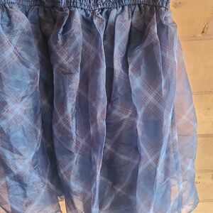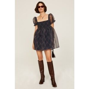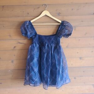 WeWoreWhat Puff Sleeve Organza Mini Dress Blue Plaid Small Frock Square Neck