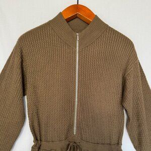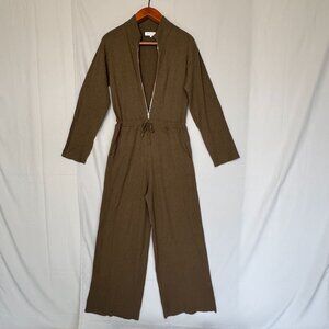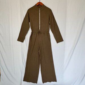 WeWoreWhat Relaxed Leisure Suit Olive Green Knit Long Sleeve Oversized Jumpsuit Size small