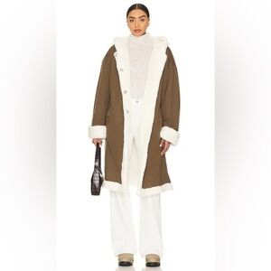 WeWoreWhat Reversible Sherpa Lined Hooded Overcoat In Kangaroo Ecru Size S/M
