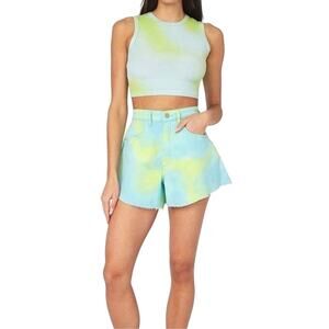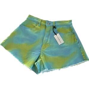 WeWoreWhat Revolve Flare Bell Short Stretch Twill Denim Blue & Green Tie Dye 28