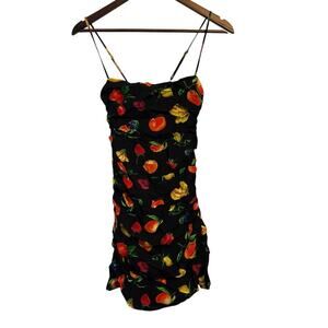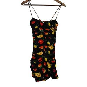WeWoreWhat Ronnie Dress XS Black Multi Fruit Print Onia Collab $195 MSRP NWT