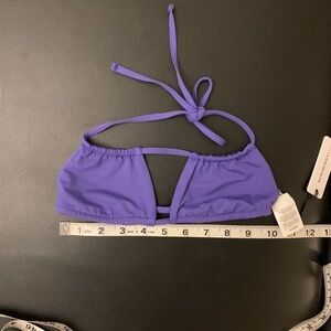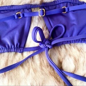 Tags: WeWoreWhat, blue bikini, bandeau swimsuit, string bikini, ruched bikini, summer swimwear, beachwear, resort wear, XS swim set, cheeky bikini, sapphire blue swim