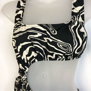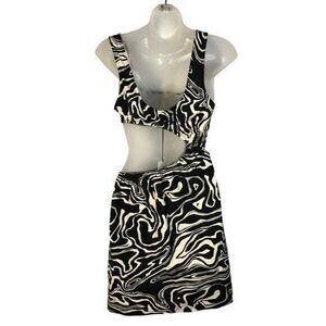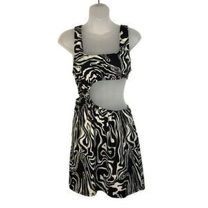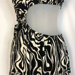 WeWoreWhat Ruched Cut Out Black & White Marble Mini Dress M