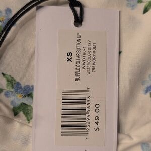 WeWoreWhat Ruffle Collar Button-Up Top Watercolor Ditsy Sz XS NWT