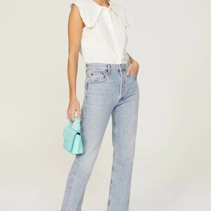 WeWoreWhat classic white button-down with a dramatic pointed collar and sweet ruffle trim.