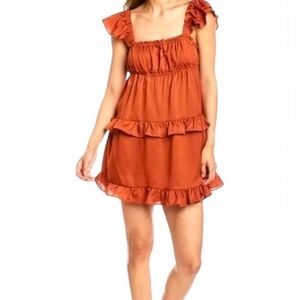 WeWoreWhat Rust Ruffle Mini DressXS-S