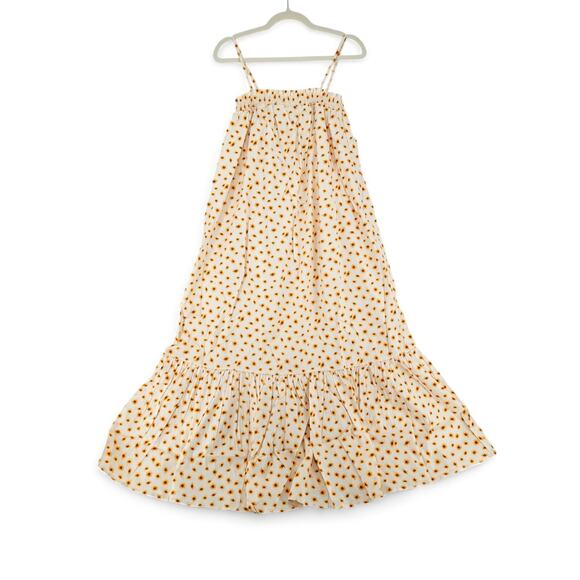 WeWoreWhat Smocked Midi Dress Small Daisy Floral Poplin Yellow Ruffle Cottage