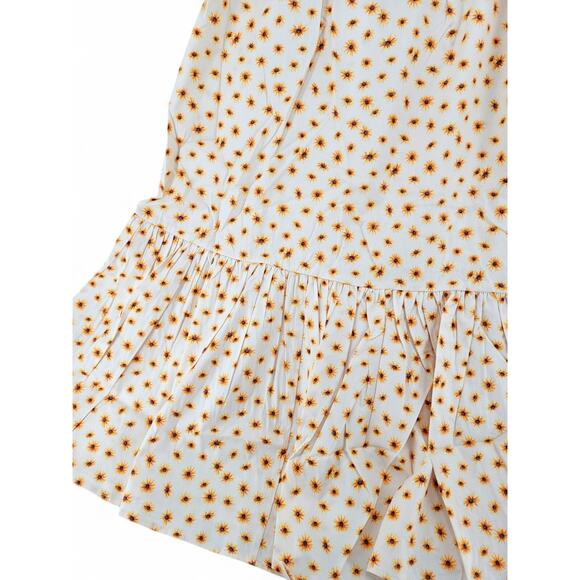 WeWoreWhat Smocked Midi Dress Small Daisy Floral Poplin Yellow Ruffle Cottagecore Sundress