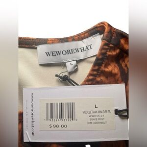 Brand new with tags WeWoreWhat sleeveless muscle tank mini dress in a bold snake print. Features a high neckline, fitted silhouette, and lightweight stretch fabric for a flattering fit. Perfect for pairing with sneakers for a casual look or boots for a night out.