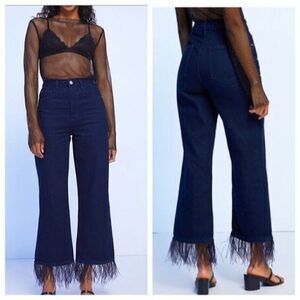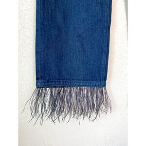 WeWoreWhat Straight Leg Dark Wash Jeans with Feather Accent Hem Size 30
