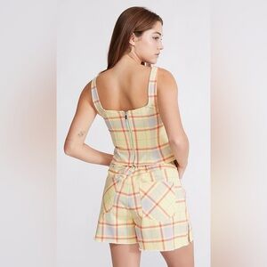 NWT WeWoreWhat The Boyfriend Short in Color Garden Glade Size 25, Plaid Print, high rise, front and rear pockets, button closure, frayed hem, side slits, relaxed fit, 3” inseam, 100% cotton, brand new condition, smoke free home