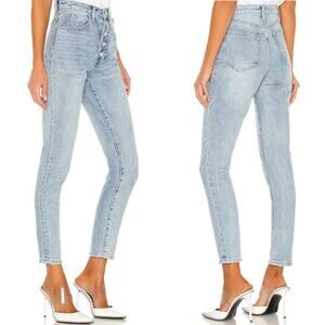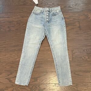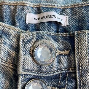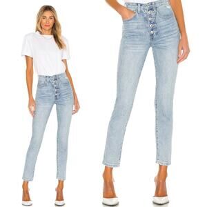 New! WeWoreWhat The Danielle Crystal Button Fly Straight Len in Light Wash Studio Size 26