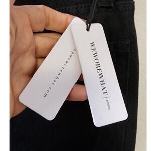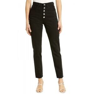 WeWoreWhat The Danielle Crystal Straight Jeans in Black - they're a size 26 and are NWT but are flawed (top button missing crystal gem).