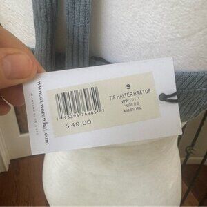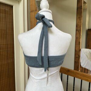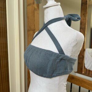 WeWoreWhat Tie Halter Bra Blue Crop Top in Storm ribbed stretch beach summer