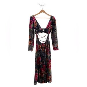 WeWoreWhat Velvet Flocked Cut Out Mini Dress Black Multi Size M