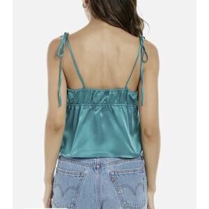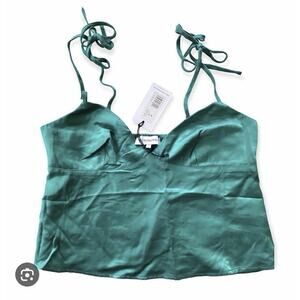 WeWoreWhat We Wore What Teal Green Tie Shoulder Camisole Tank Top Satin XL