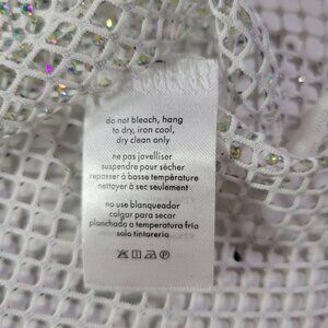 • White mesh fabric with rhinestone accents