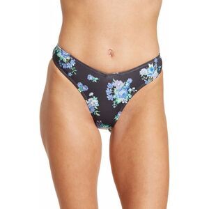 WeWoreWhat Womens Bikini Bottom L V Shaped Black Floral Ruffle Accent Cheeky