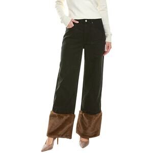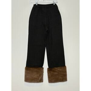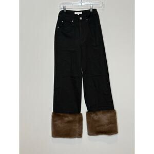 WeWoreWhat Womens Black Straight Leg Jeans with Faux Fur Cuffs Size 24