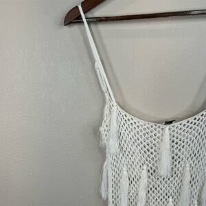 WeWoreWhat Women's Ivory Crochet Tassel Mini Dress Size M Boho Summer