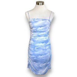 WeWoreWhat Womens Ronnie Slip Dress XS Powder Blue White Cloud Print Ruched Mini