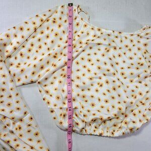 WeWoreWhat Yellow Sunflower Print Long-Sleeve Crisscross Open-Back Blouse Size L