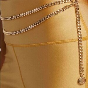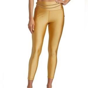 WeWoreWhat high-rise leggings gilded gold Pull-on style. Loops for chain belt. Belt not included