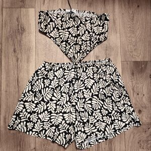 WeWoreWhat Safari Leaves Linen Strapless Cutout Romper Size M