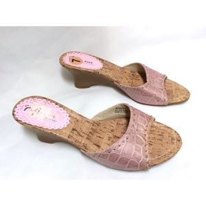 Wear Ever by Bare Traps Rydel Pink Patent Crocodile Wedge Sandals Open Toe.