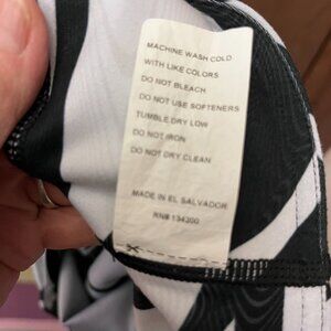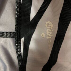 WITH yoga excercise zebra print leggings black and white size large. Machine Wash, tumble dry. Polyester and Spandex. Measurements taken when laid flat. Plenty of stretch, but fits sizes 6-10.