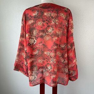 Stylish floral top by Wear It in like new preowned condition and perfect to wear over your favorite tank top or more formal top for professional wear. It measures 20 inches armpit to armpit laying flat and closed. It is 24 inches in length from shoulder to hem.