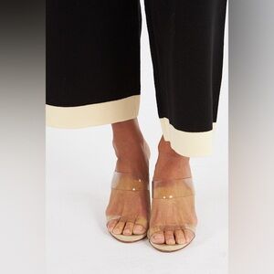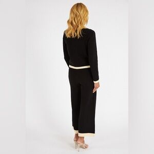 The Cosette Pant feature a slim high-waist fit that drapes into an effortless crop wide-leg fit, finished with a contrast cream edge at the waist and leg opening.