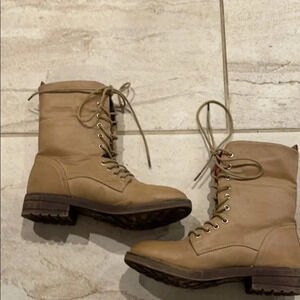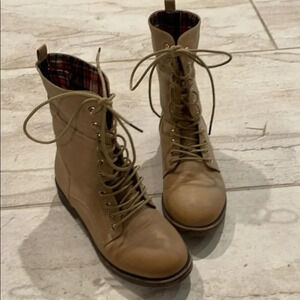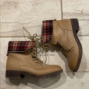 Wear two ways boots that are in preloved condition with flaws represented in discounted price. Taupe color. These have a couple of scuffs and some separation of the plaid in a couple of areas. Soles, toes, and heels in good condition so they still have life left! Run a bit big. Leveled 7.5, would fit 8 better.