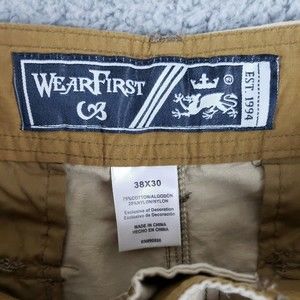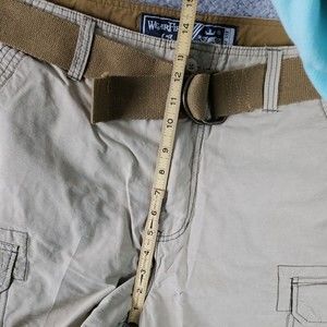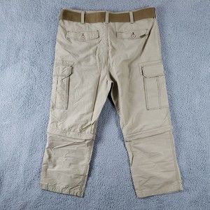 WearFirst Convertible Zip Off Cargo Hiking Pants Men's Belted Beige Khaki.