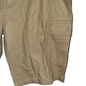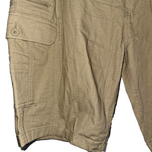 Brand: WearFirst Size: 42 Color: Tan/Khaki Style: Cargo/Utility shorts Elastic waistband with belt Multiple cargo pockets with button closures Knee-length cut Perfect for hiking, camping, or everyday wear