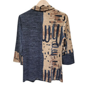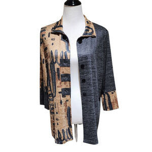 Funsport Button Down Shirt Shacket Wearable Art Abstract Tan Gray Size M